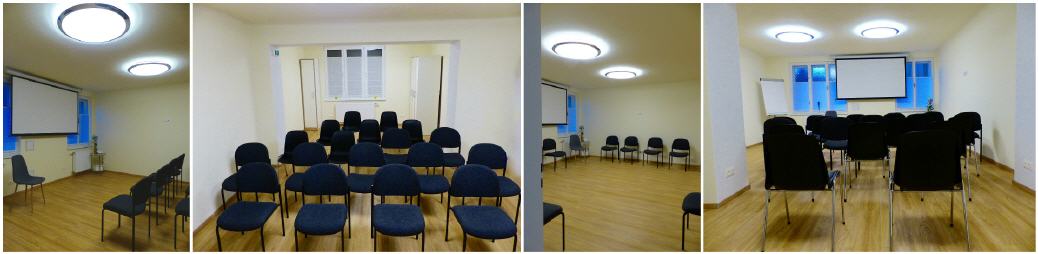 Der Raum ist mit verschiedensten Seminarequipement ausgestattet. Stauraum ist bei Bedarf durch die Kästen gegeben. Auch dieser Raum ist mit einer kleinen Wasserecke eingerichtet.